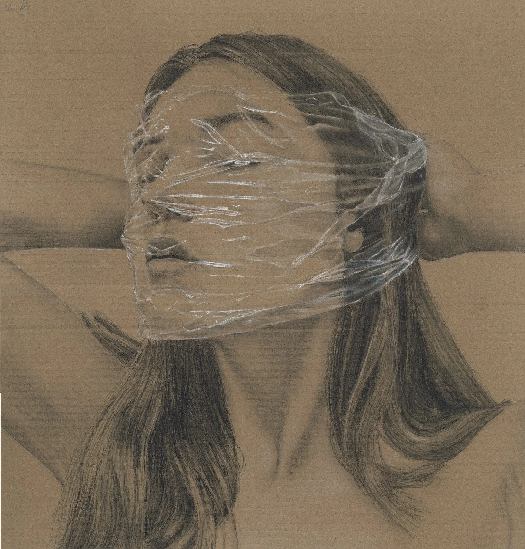 "Suffocation" Charcoal on cardboard, 25 x 25 in.